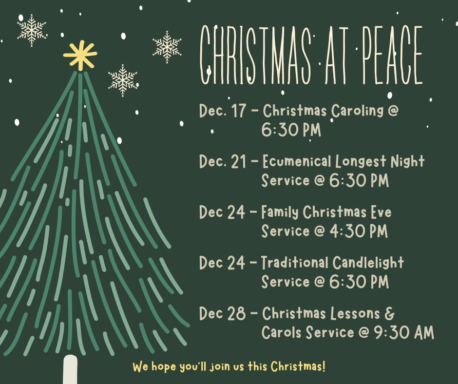 Online Worship: Sundays at 9:30 am on the Peace YouTube Channel
