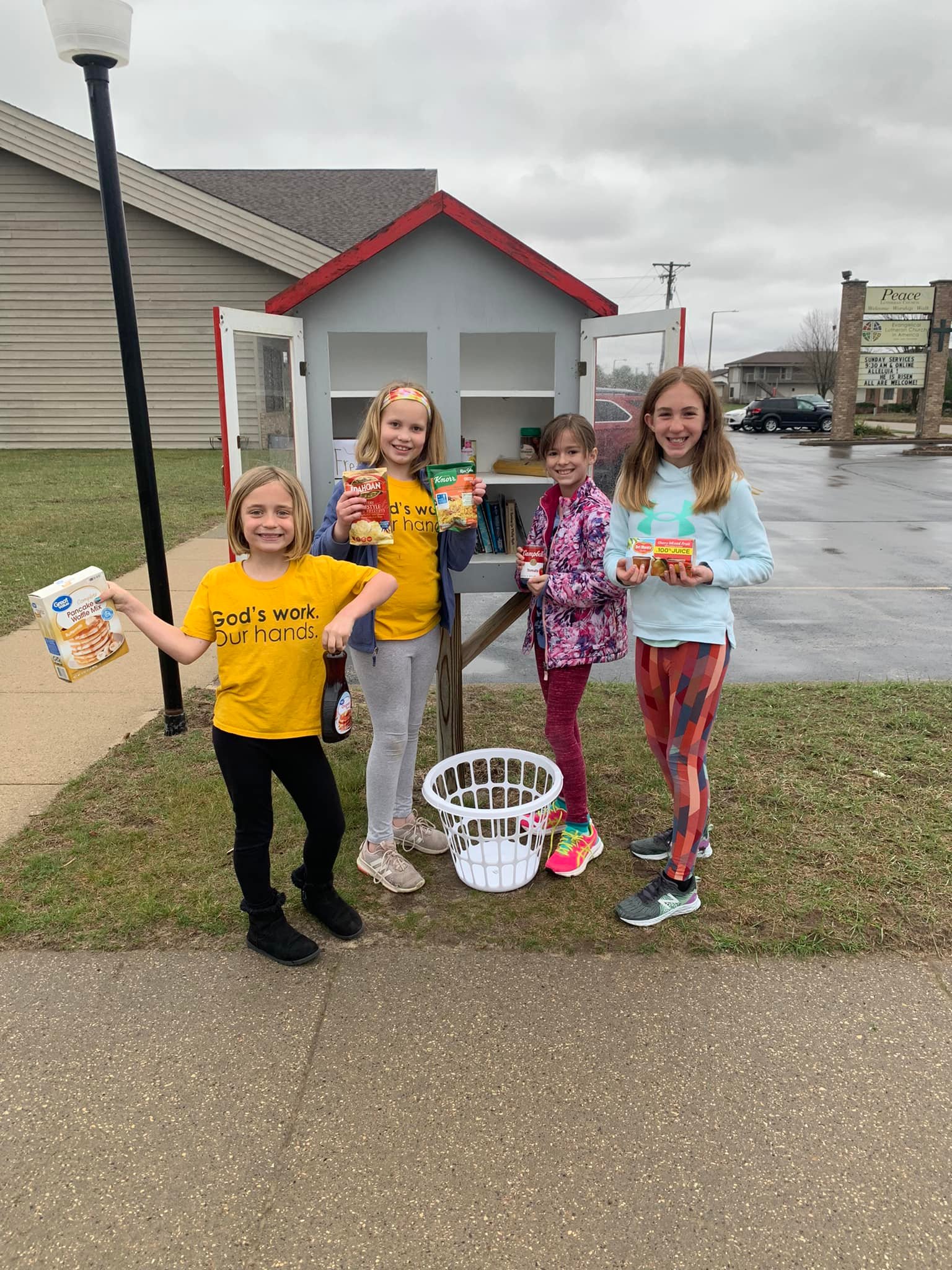 Consider dropping nonperishable donations at Peace for our “Little Library” Food Pantry. We’ve converted half of our library space to meet the needs of those who might need food in this time. Drop donations right in the library or put them at the Peace door to be used as needed to restock our pantry. Donation ideas: boxed meals, Mac & Cheese, Canned Vegetables, Fruit Cups, Granola bars, or even personal hygiene products.