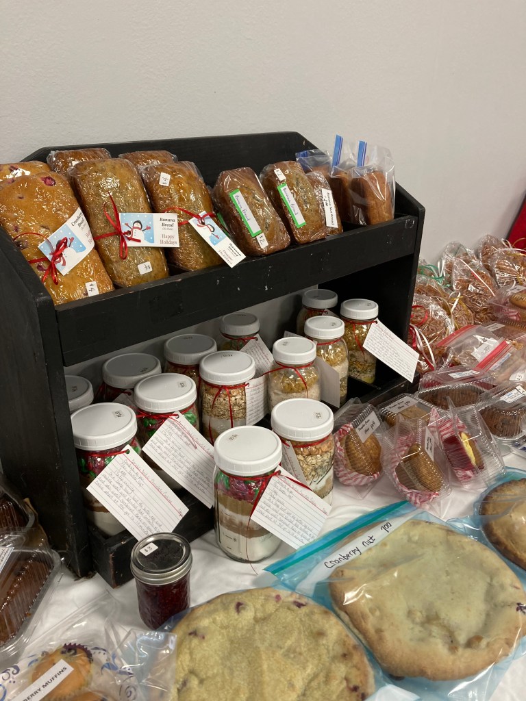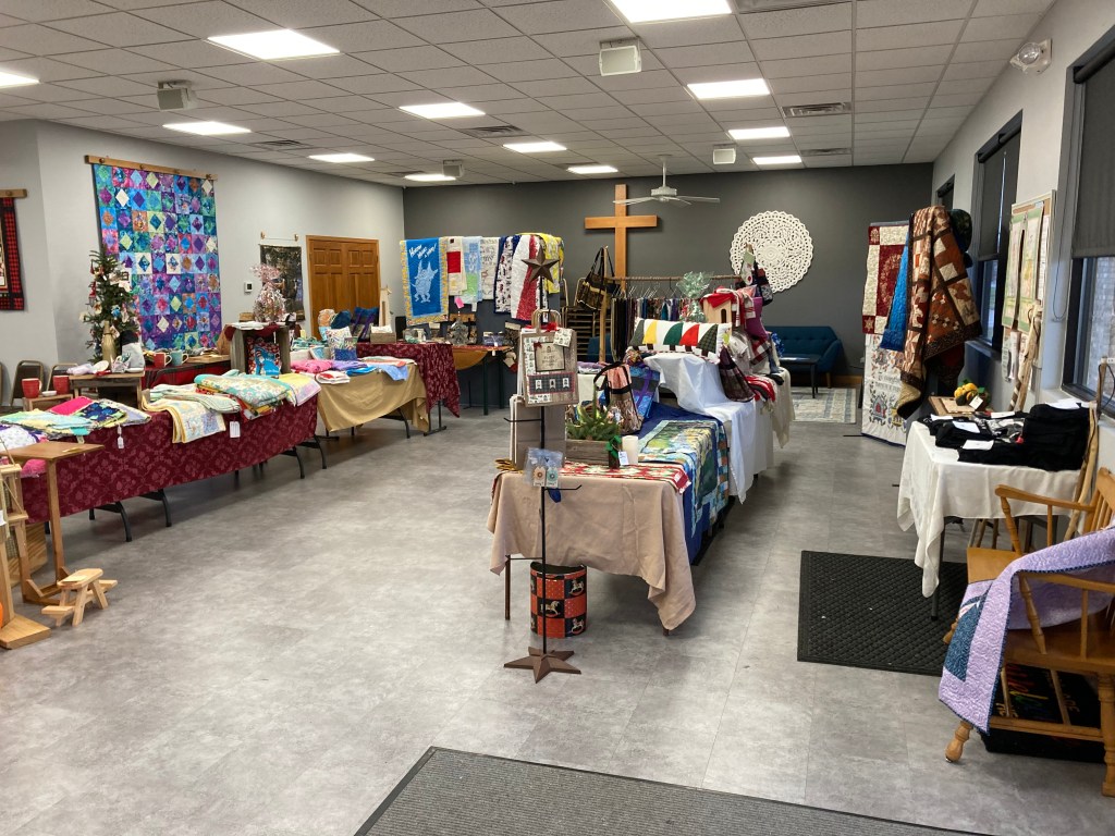 Initially, a group of quilters gathered in the bright, roomy education room to sew together. New folks were encouraged to come – novices learned to sew, beginners received tips and encouragement. Soon people with other talents joined the group.